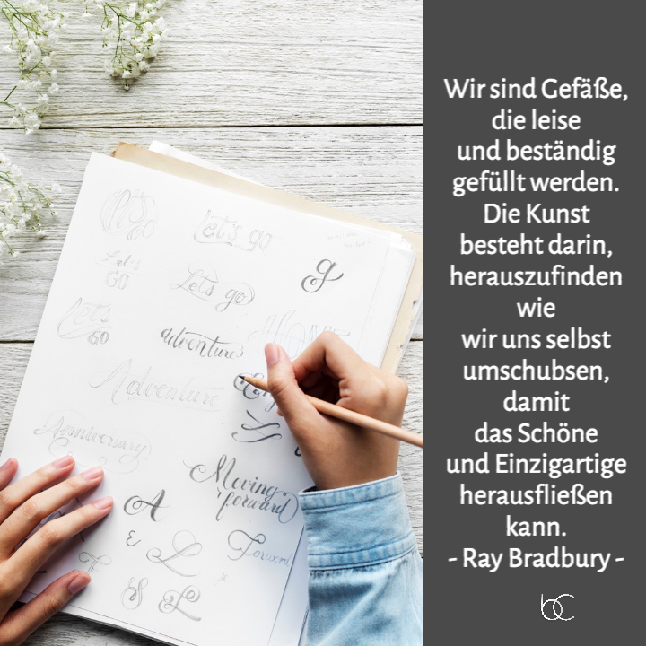 Die Kunst besteht darin, herauszufinden wie wir uns selbst umschubsen, damit das Schöne und Einzigartige herausfließen kann.‘